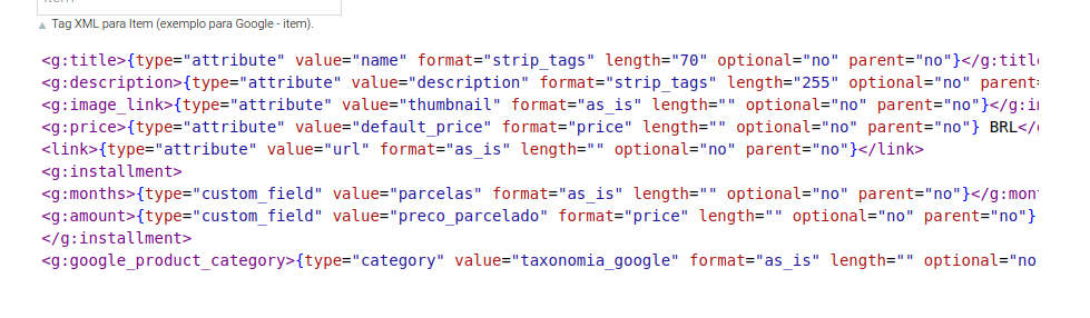 <g:price>{type="attribute" value="default_price" format="price" length="" optional="no" parent="no"} BRL</g:price>