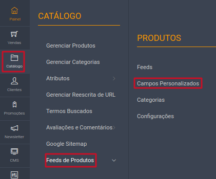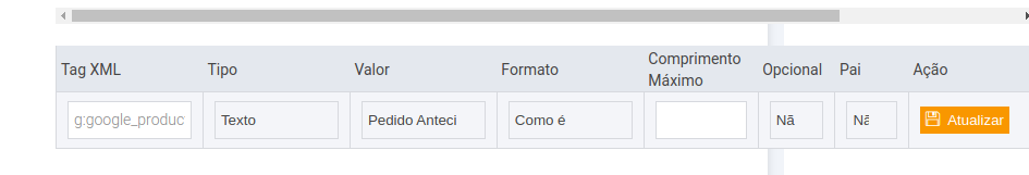 No campo "Produto" que deve ser preenchido com a chave que abre o XML declarando o conteúdo deste (no caso do Google setar como item o identificador).