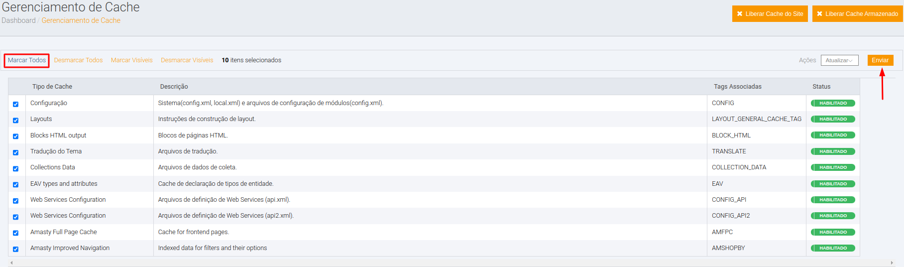 Clicar em Marcar Todos e em: Enviar