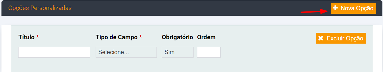 > Para inserir a personalização. Clique em Nova opção