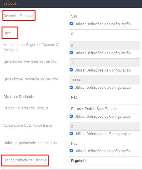 Aba Estoque - Na teoria não haveria razão para controlar o estoque de um produto virtual, poies estes seriam infinitos. Mas na verdade temos que verificar o caso concreto - pois a exemplos de produtos virtuais que precisam de controle de estoque como: aluguel, ingressos, serviços pessoais (online) etc. Caso for ter o gerenciamento de estoque clique em: Gerenciar estoque e marque sim, defina a quantidade, e em disponibilidade de estoque marque: Em estoque. Se não for ter o controle/gerenciamento de estoque marque não em gerenciar estoque.