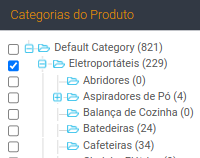 Em Categorias do produto, você irá selecionar a categoria que o produto se enquadra.